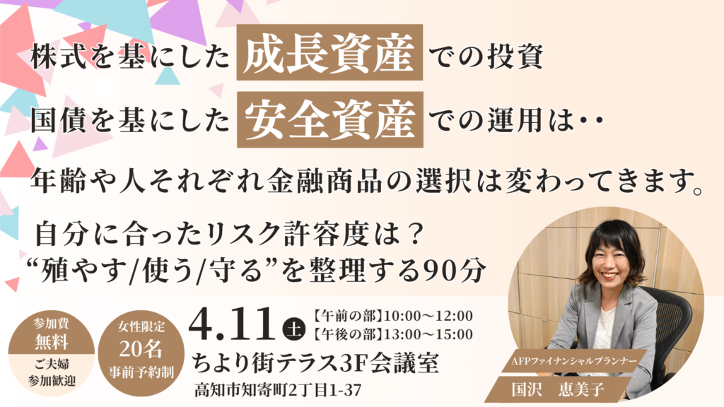 2024年9月27日(金)、9月28日(土)10:00~11:30 「高知マネーセミナー」